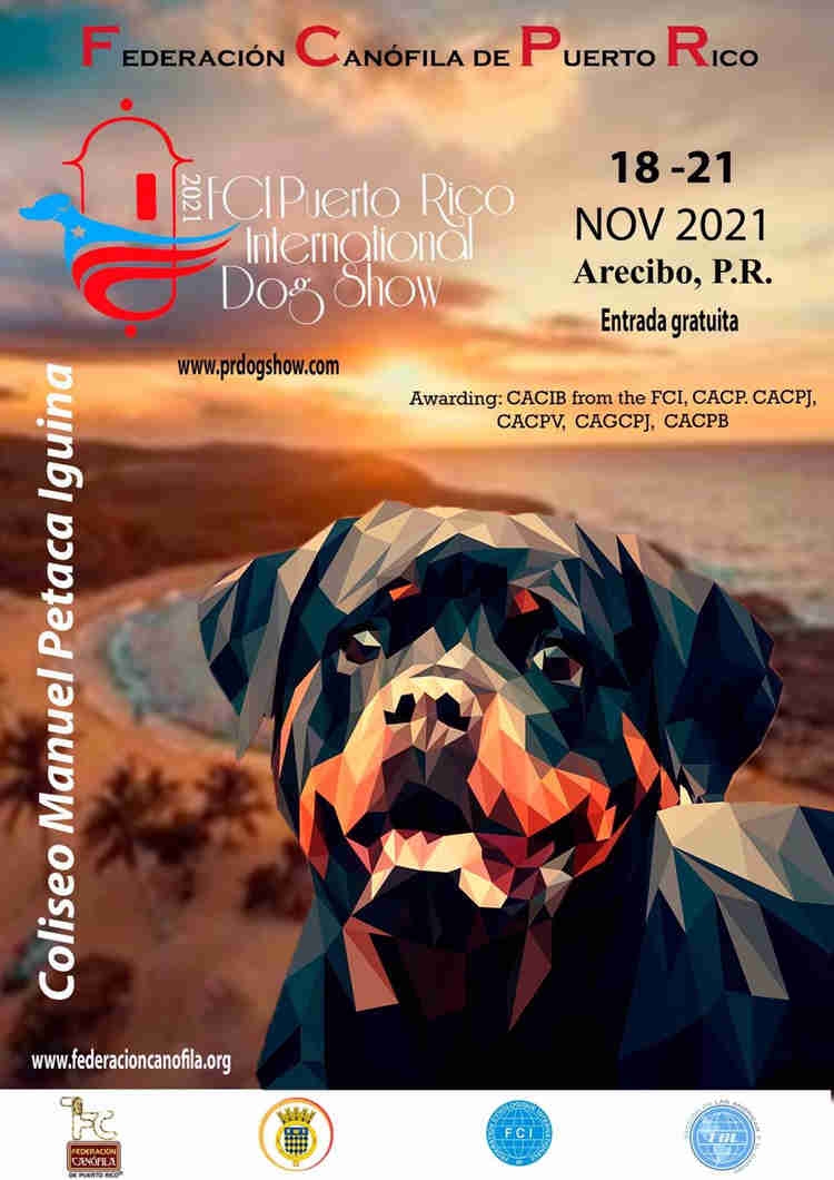 La Federación Canófila de Puerto Rico (FCPR) se complace en anunciar que el FCI-Puerto Rico International Dog Show 2021 se celebrará del 18 al 21 de noviembre en la ciudad de Arecibo.